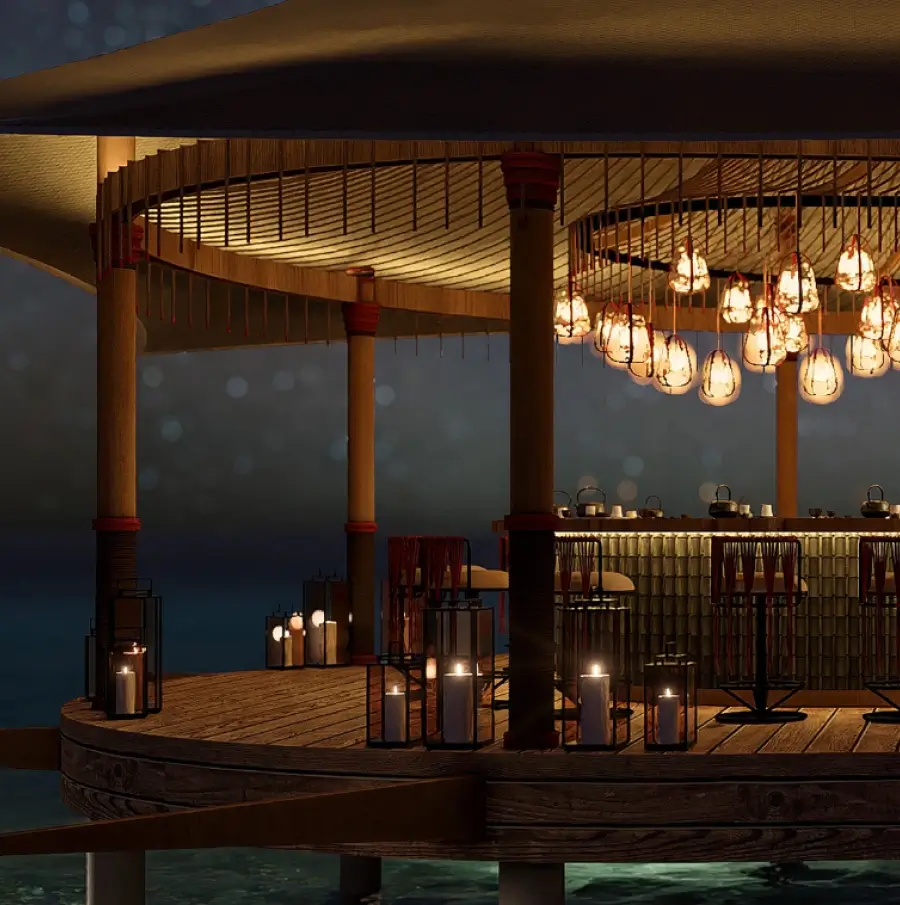 Aura’s intimate overwater restaurant, open for dinner. Contemporary East and Southeast Asian cuisine is crafted with refined techniques and exceptional ingredients.